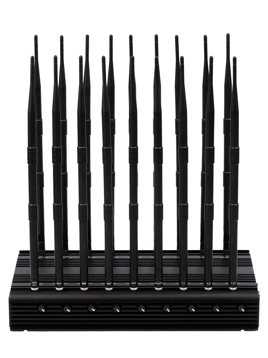 Широкополосный стационарный подавитель сигналов «JYT-1200A», оснащён 12 антеннами для блокировки всех использующихся сегодня каналов и частот беспроводной связи.